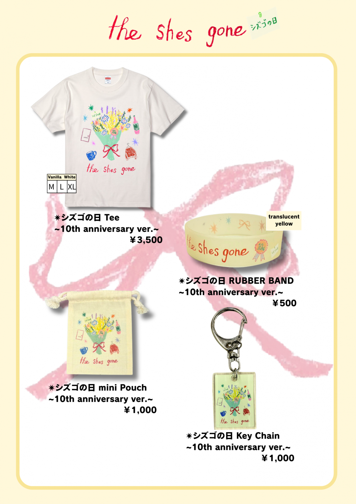 the shes gone presents「シズゴの日」より販売される新グッズのラインナップを発表しました!